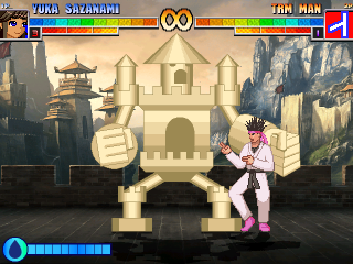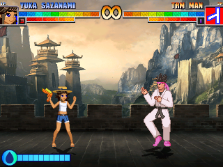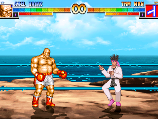 [システム]弱P・中P・強P・弱K・中K・強Kの6ボタンを使用ダッシュ・小ジャンプパワーMAX発動・回り込みガーキャン攻撃・ガーキャン移動